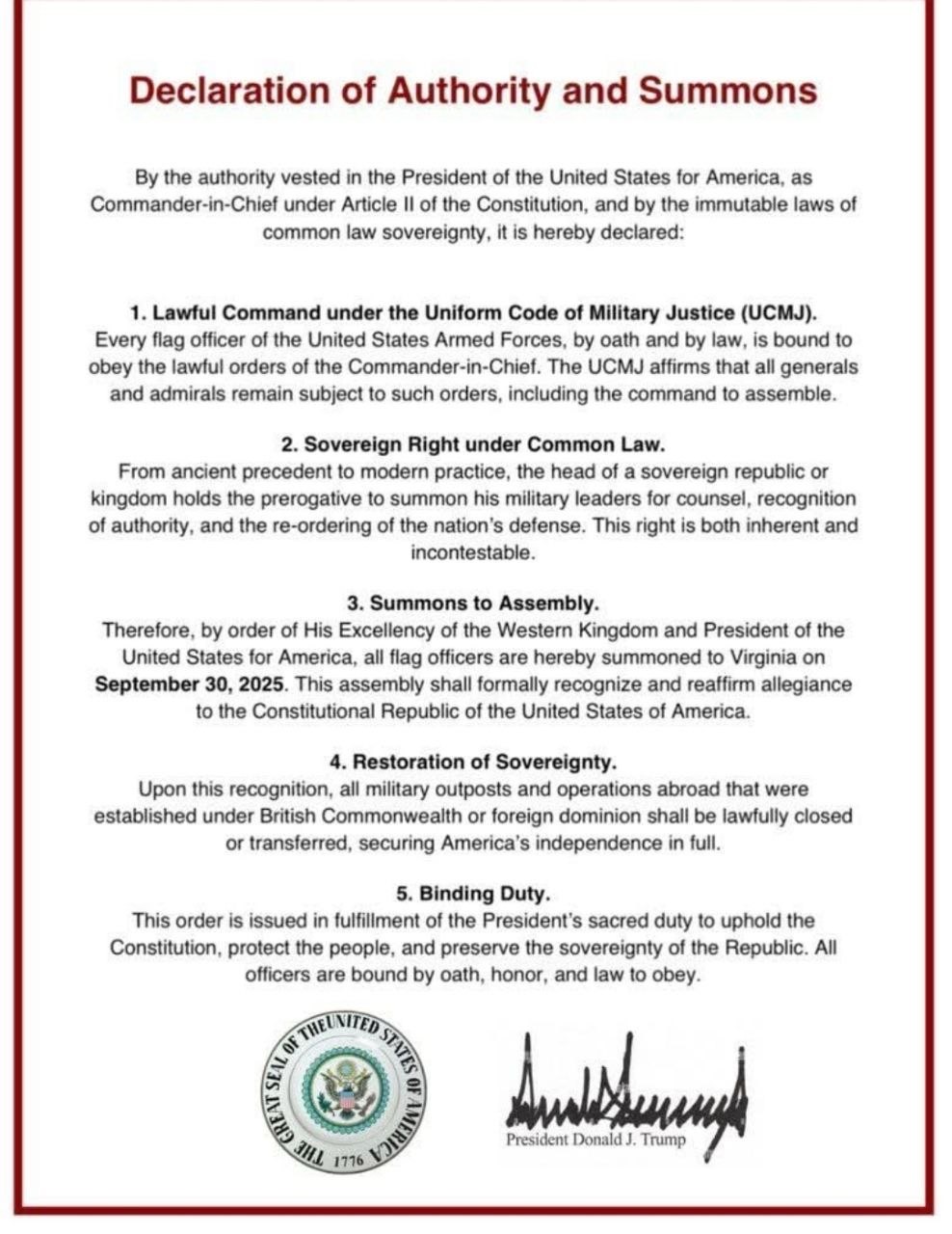 Declaration of Authority and Summons